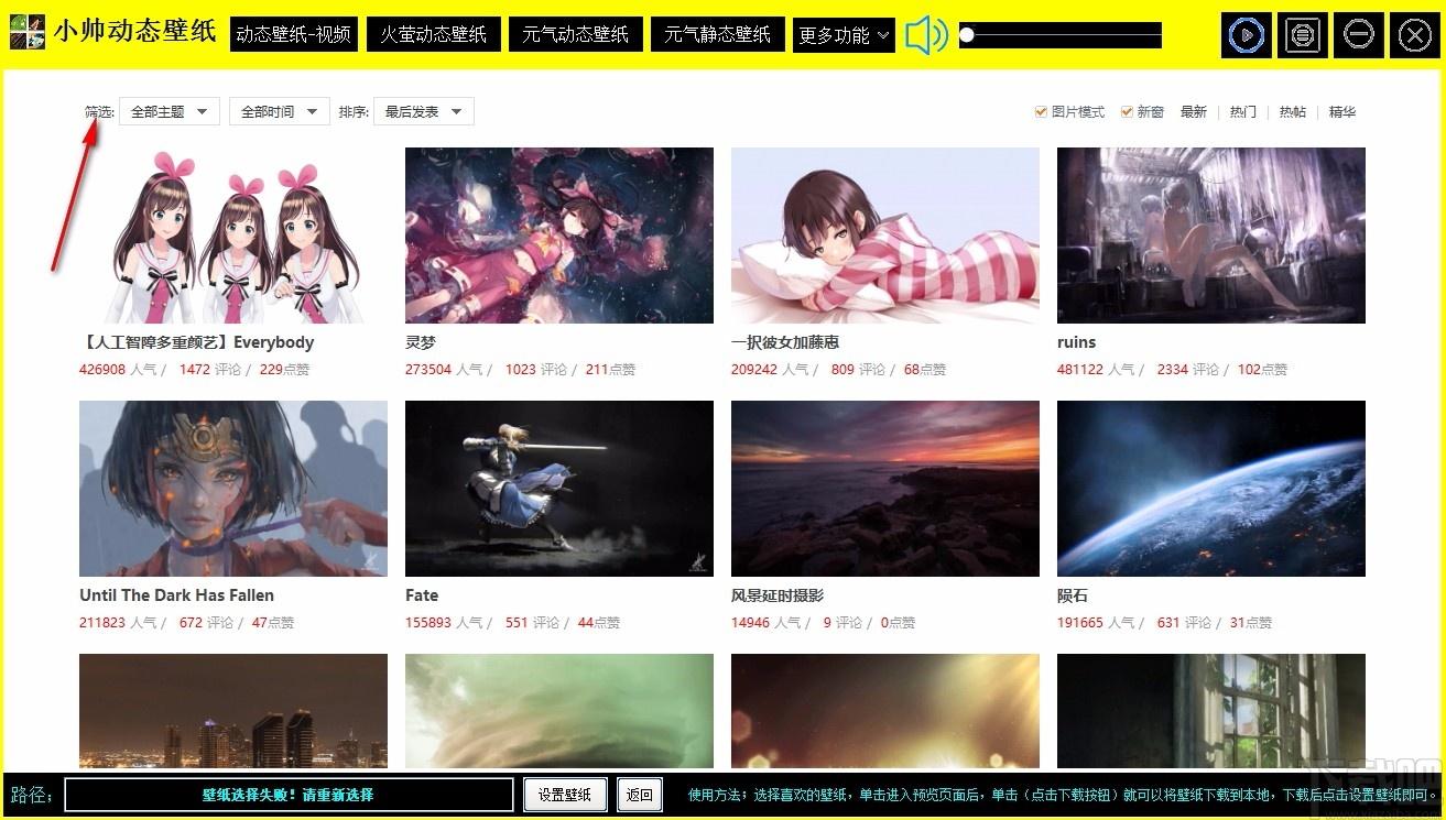 支持筛选,可查看指定主题和指定时间下的壁纸